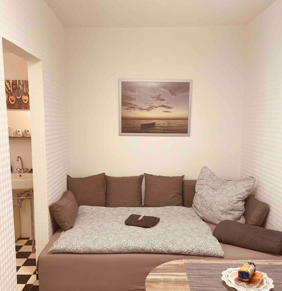 Witaj w moim pięknym i przytulnym mieszkaniu w Mönchengladbach-Rheydt. Małe i urocze mieszkanie souterrain o powierzchni 25 m² jest bardzo jasne i ma wszystko, czego potrzebujesz, aby pobyt był idealny: Łóżko typu queen size, mała kuchnia, łazienka z prysznicem i duży telewizor. Oczywiście świeża pościel i ręczniki są wliczone w cenę, na życzenie na dłużsłużęt dostępna jest pralka.