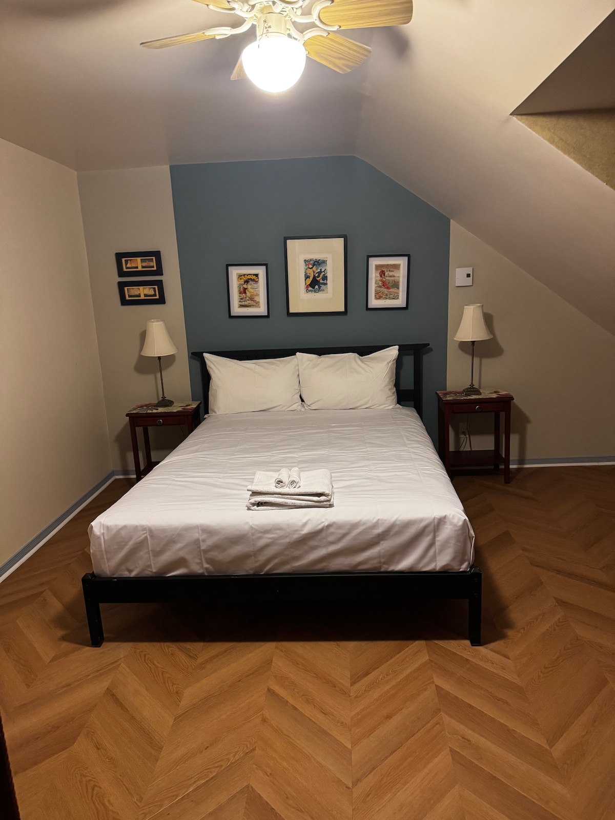 Élégante et apaisante, les deux Chambres vous vous accueille dans une ambiance douce aux teintes bleues et grises séparée par deux entrée indépendantes. Les affiches rétro accrochées au mur apportent une touche balnéaire et vintage, idéale pour une escapade reposante. Chaque chambre disposent de sa salle de bain privée attenante, équipée d’une douche. Spacieuse et confortable, elle convient parfaitement aux couples ou aux voyageurs en quête de sérénité et de charme.