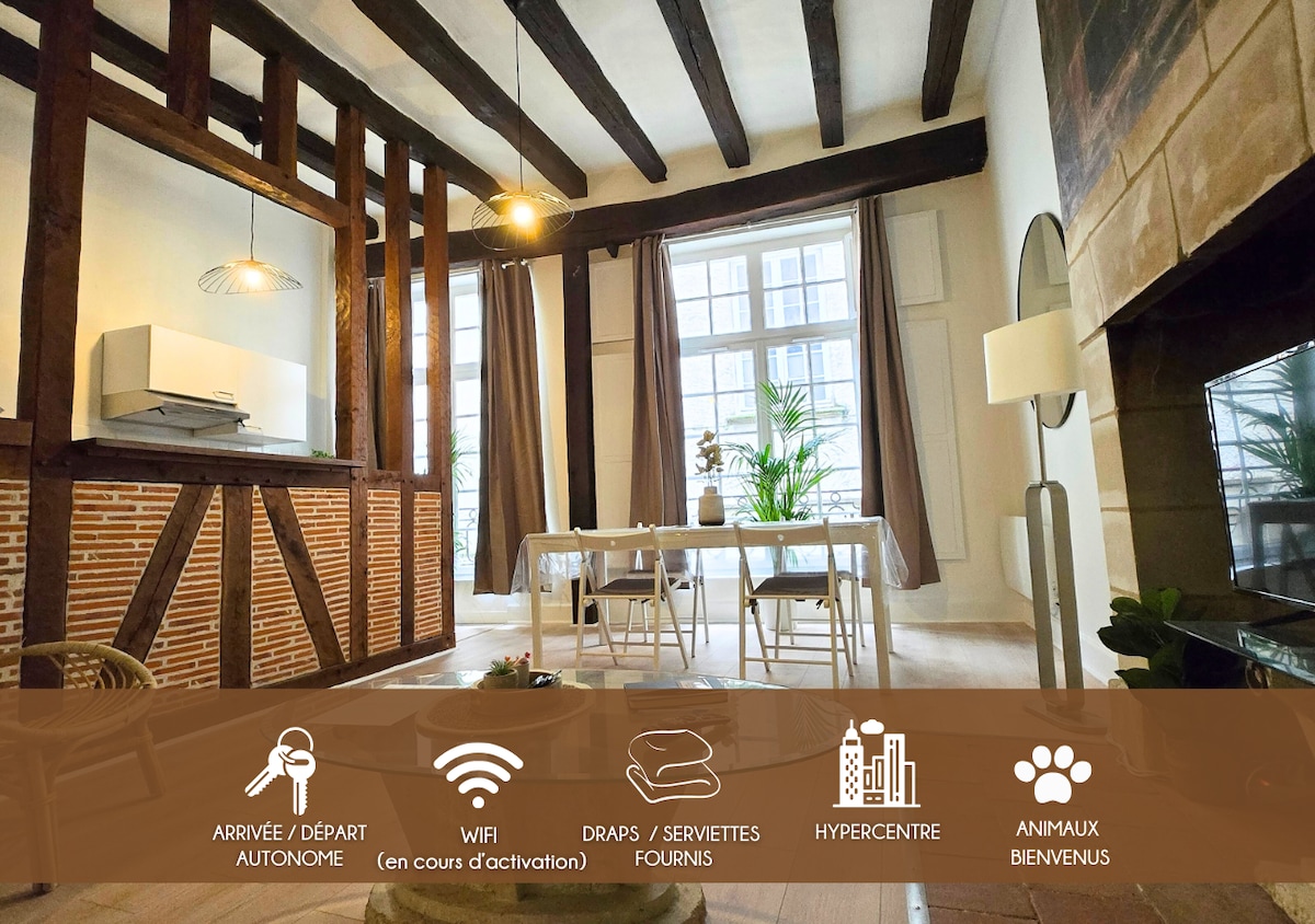 Witamy w naszym przestronnym mieszkaniu T2 (60 m2) na pierwszym piętrze spokojnego budynku w samym centrum Tours! Idealnie położone w samym sercu historycznego centrum, nasze w pełni wyposażone i odnowione mieszkanie oferuje wyjątkowe doświadczenie. - Wi-Fi / ekspres Nespresso / pralka / zmywarka - Pościel i ręczniki dostarczane - Pokój do pracy - Place Plumereau (1 min pieszo), Rue nationale (3 min pieszo), Dworzec kolejowy (15 min pieszo) - Przyjazd i wyjazd w 100% autonomiczny Wystarczy tylko rozłożyć walizki!