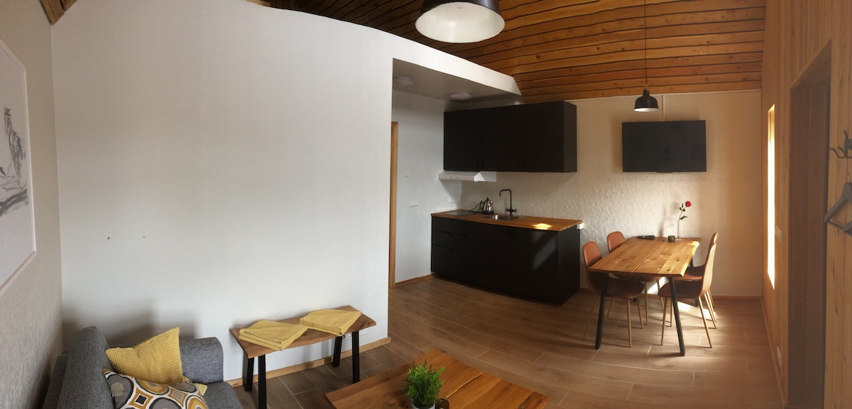 Przytulna, minimalistyczna miniwilla o powierzchni 36 m² dla maksymalnie 2 osób (w tym dzieci w wieku 0–13 lat), zaledwie 2 km od Fjaðrárgljúfur. Z mini willi roztacza się wspaniały widok na góry i pokryte mchem pola lawy. Oferuje sypialnię, nowoczesną łazienkę z prysznicem i w pełni wyposażoną kuchnię z piekarnikiem/kuchenką mikrofalową, zmywarką i lodówką. Wypij poranną kawę z ekspresu Nespresso Citiz, podziwiając spokojny islandzki krajobraz.