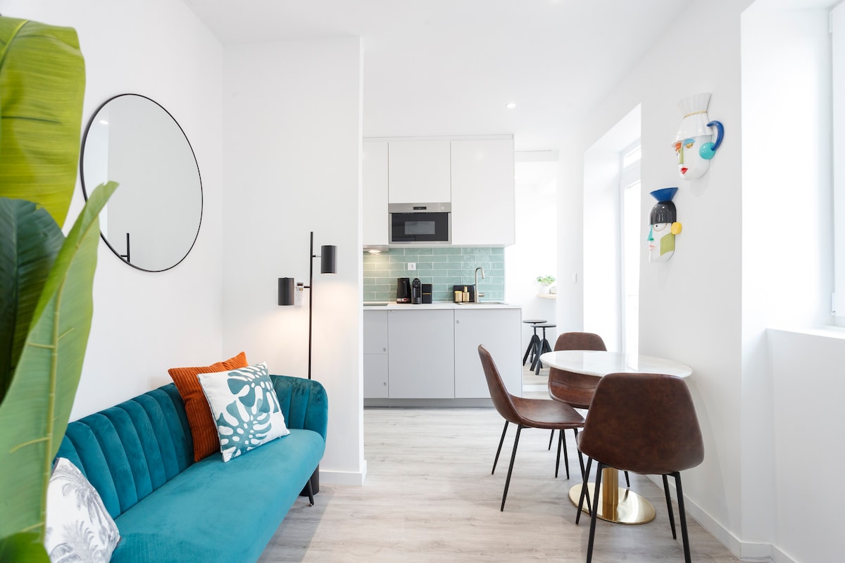 To odnowione studio znajduje się w Areeiro, jednej z najbardziej centralnej lokalizacji w Lizbonie, w odległości krótkiego spaceru od stacji metra i 10 minut od centrum miasta metrem. Posiada pokój dzienny i jadalnię, funkcjonalny aneks kuchenny, jedno podwójne łóżko na antresoli, dostępne przy schodach, oraz jedną łazienkę z prysznicem. Mieszkanie ma naturalne światło słoneczne z małym balkonem i dużym oknem. Znajduje się na trzecim piętrze i choć nie ma windy, schody są duże i łatwo dostępne.