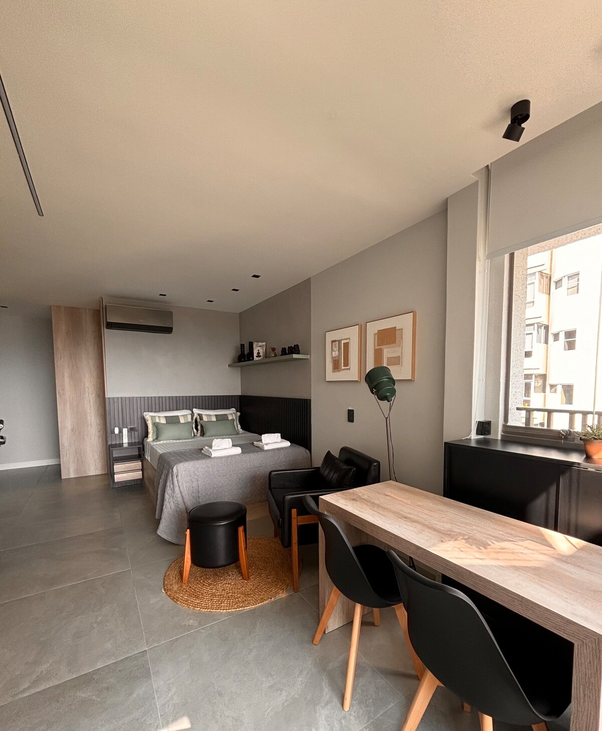 Nowe studio, z designem i architekturą w Vila Madalena. Studio znajduje się przy bardzo spokojnej, zadrzewionej ulicy, w pobliżu głównych barów, metra i restauracji urokliwej dzielnicy Vila Madalena. Studio posiada klimatyzację, minibar, ekspres do kawy Nespresso, materac marki Emma i wszelkie udogodnienia zapewniające wyjątkowy pobyt w São Paulo. W budynku znajduje się w pełni wyposażona siłownia, pralnia i basen.