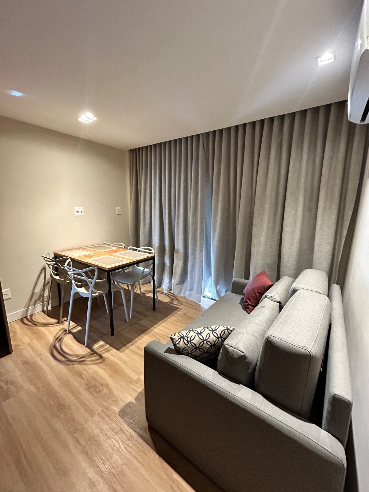 Mieszkanie w stylu loftu, przytulne, umeblowane i pięknie urządzone, aby zapewnić gościom wygodę i dobre samopoczucie. Znajduje się kilka metrów od plaży Vilas i w pobliżu Vilas Tenis Clube, barów, targowisk i piekarni. Idealne dla tych, którzy chcą cieszyć się plażami, balladami w regionie i dla tych, którzy są w pracy i nie rezygnują z wygody.