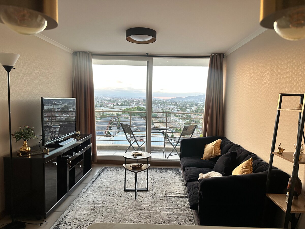 Nuevo departamento con inmejorable y despejada vista al mar. Ideal para parejas o estadías de teletrabajo. Acomodada ubicación sector Reñaca/Concón. El departamento cuenta con cerradura inteligente, cama 2 plazas, futón retráctil, Smart TV 4K, Wifi fibra óptica, parlante JBL y estacionamiento techado subterráneo. Incluye ropa de cama, toallas y secador de pelo. No se permiten mascotas, fumar dentro. No incluye estufa o calefacción (se recomienda traer en invierno). Baño remodelado y pintado.