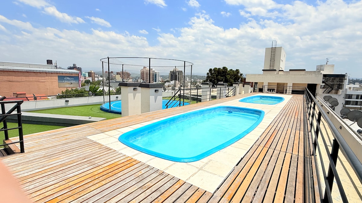 Nowy apartament z salonem, oddzielną kuchnią, dwiema sypialniami wyposażonymi w elementy pierwszej linii hotelowej i dwiema łazienkami. Posiada klimatyzację, ogrzewanie, izolację akustyczną zapewniającą lepszy odpoczynek i wszystkie niezbędne urządzenia zapewniające komfortowy pobyt. Znajduje się w najlepszej lokalizacji w Nueva Córdoba, dwie przecznice od „Paseo del Buen Pastor”, w pobliżu parków, restauracji, muzeów, sanatorium, barów, dworców autobusowych i uniwersytetów.