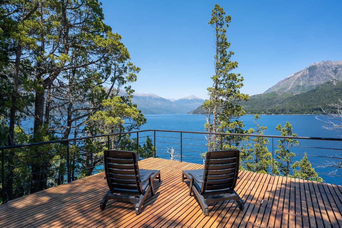 Witamy w Twoim butikowym ośrodku wypoczynkowym z panoramicznym widokiem na majestatyczne jezioro Nahuel Huapi, podgrzewanym basenem, jacuzzi i siłownią. Nowoczesny design i komfort, zaledwie 15 minut od centrum Bariloche. Położony w spokojnej okolicy, idealny dla par lub podróżnych szukających relaksu. Obudź się w otoczeniu przyrody i patagońskiego stylu, z widokiem na jezioro i góry.