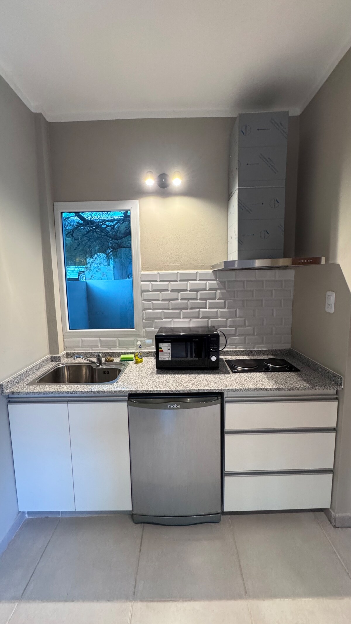 Departamento moderno en El Rodeo con vista al Cristo y a las montañas. Cuenta con una habitación matrimonial y otra con dos camas individuales, baño completo, sala de estar, cocina equipada y balcón al este. Dispone de terraza, asador y un amplio patio verde al frente. Ideal para descansar y disfrutar del entorno natural.