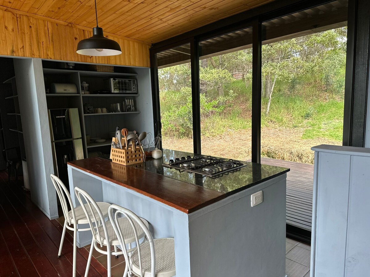 Piękna wiejska chatka idealna dla par, które chcą uciec do magicznego miejsca, pełnego przyrody, ciszy i spokoju. Domek jest wykończony i wystrojony w drewnie, a naturalne światło wpada do niego przez cały dzień. Możesz rozpalić kominek, aby ogrzać przestrzeń i zrelaksować się, podziwiając widoki na góry. Posiada kuchnię wyposażoną w sprzęt do przygotowywania wszelkiego rodzaju posiłków. Otwieramy nasze drzwi dla wszystkich, którzy chcą przeżyć wyjątkowe i spokojne chwile.
