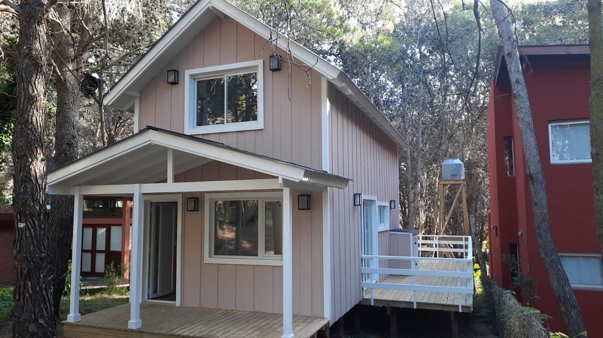 Każdy zakątek tej chatki został zaprojektowany tak, abyś poczuł się jak w domu. Wygodne i przytulne miejsce na odpoczynek od codzienności. Wszystko, czego potrzebujesz, jest w pobliżu: plaża, las i centrum, idealne na spacery. Wartość prostego życia polega na dzieleniu się nim z tymi, których wybieramy. Zwierzęta mile widziane! Całkowicie ogrodzone. – 6 przecznic od plaży i centrum Mar Azul – 12 przecznic od centrum Mar de las Pampas.