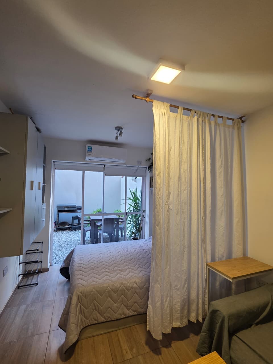 Depto de 1 dormitorio sin vecinos tiene terraza y cochera propia con sillones, mesa y asador. Cuenta con living/oficina/consultorio, cocina comedor equipada, baño completo y entrada independiente. Decorado con estilo y mucha luz natural. WiFi, TV Smart y todos los servicios. Ubicado en zona tranquila y segura, cerca de todo en pleno gral Paz.