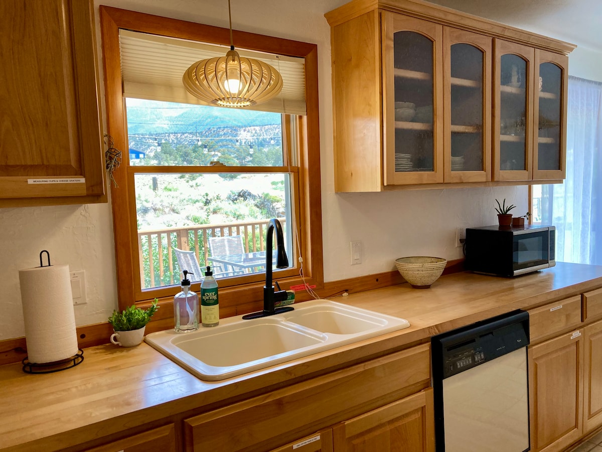 Tylko 5 minut do centrum Salidy i 25 minut do Monarch Ski! Oferujemy 2 sypialnie, 1 łazienkę, prywatny 1 piętrowy dom + rozkładaną sofę. Zalesiona nieruchomość o powierzchni 2 akrów z widokiem na góry i parkową scenerią z 2 prywatnymi tarasami oraz wspólnym „tarasem wspólnotowym” z sezonowym strumieniem (kwiecień-październik) i łąką. Należy pamiętać, że piwnica Airbnb jest prywatnie zamknięta do przechowywania, a powierzchnia jest dzielona z oddzielnym domem. Tylko pościel ze 100% bawełny i naturalne detergenty, bez użycia sprayów zapachowych. Lic #012284