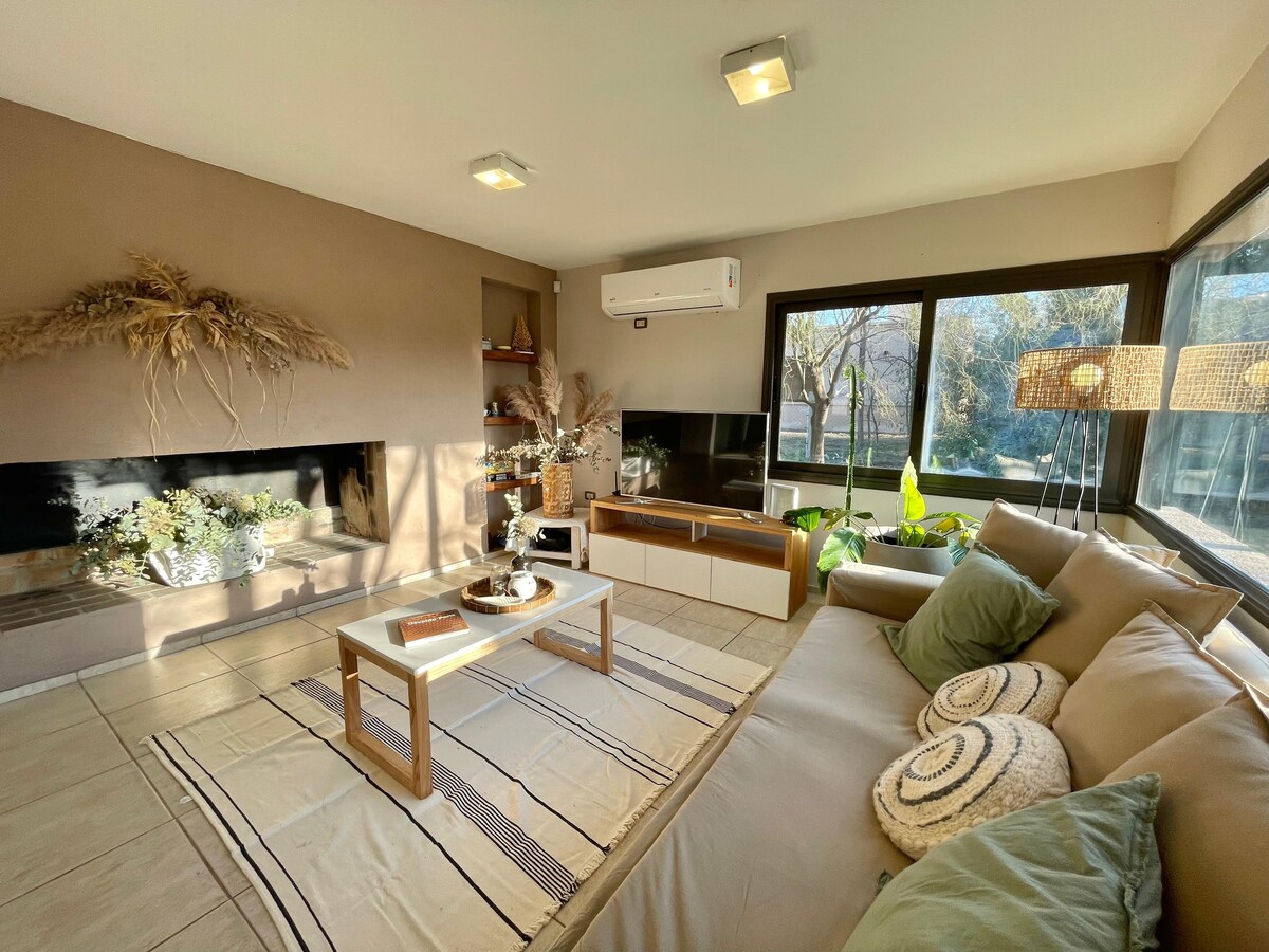 6 minut od Cucú, zagubisz się w kamiennym domu, ze zjazdem do rzeki Los Chorrillos i dostępem do jeziora. Nowa jednostka, z wszystkimi udogodnieniami premium, klimatyzacją, elektryczną kuchenką indukcyjną, inteligentnymi szybami, supem, gigantycznym jacuzzi na zewnątrz. Znajduje się na terenie o powierzchni 3500 m, który dzielisz tylko z dwoma namiotami położonymi bardzo daleko od domu. Idealne dla par, które chcą przeżyć wyjątkowy moment na łonie natury, ale blisko wszystkiego. Jestem supergospodarzem, sprawdź komentarze. To magia!