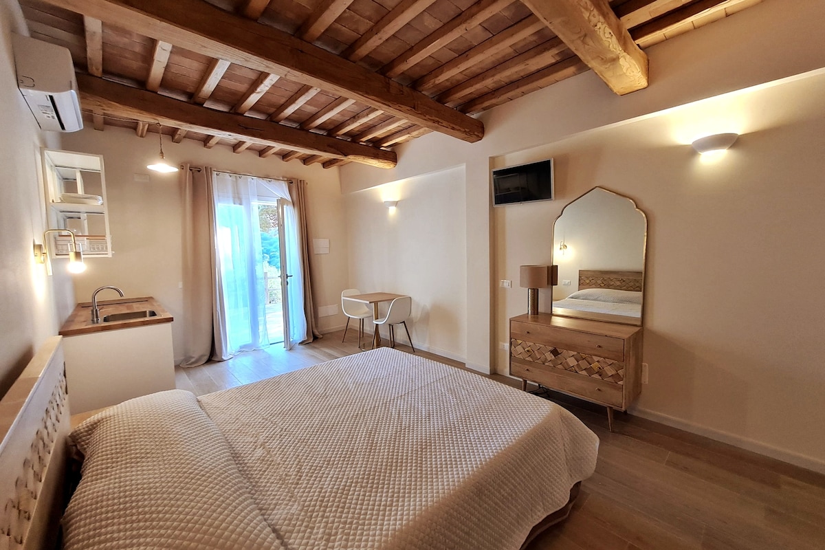 Il bilocale nasce dalla suddivisione di un ampio appartamento situato al primo piano di un complesso di terratetti a Rio Marina, distante 1km dal porto del paese. L'ingresso è indipendente dall'appartamento gemello. Al suo interno un'ampia camera matrimoniale, con la possibilità di ospitare fino ad un massimo di 3 persone aggiungendo un letto supplementare (previo avviso al momento della prenotazione); un bagno ed una zona giorno/cucina dotata di una terrazza abitabile.