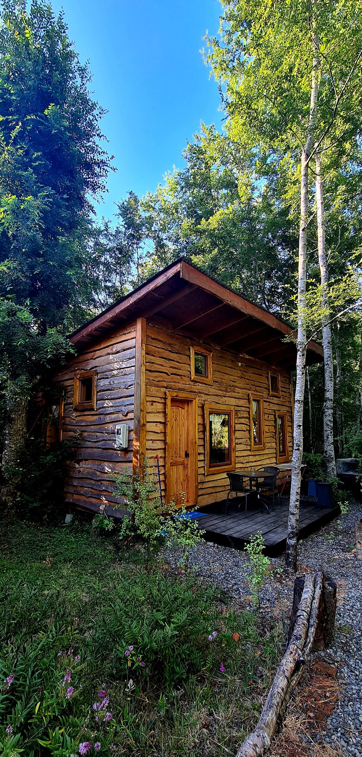 A 45 minutos (32 km) de Pucón, hermosa cabaña alpina inserta en el bosque, pensada para una experiencia de desconexión y vida simple. Silencio, canto de aves, árboles nativos, sol y lluvia cordillerana, con excelente WiFi. Contamos con energía eléctrica convencional e incorporamos energía renovable para ser más conscientes con el planeta. Calefacción estufa a pellet y cocina a leña, para quienes valoran la vida simple y consciente. Si amas el bosque más que los lujos urbanos, esto es para ti!