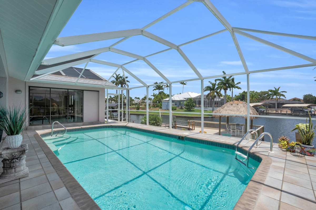 Fully RENOVATED and good vibes only! Enjoy a relaxing stay at this family and small-pet friendly home! Nestled in the lovely Yacht Club area with public beach access 1.4 miles away! A 2 min drive to downtown Cape and ample dining/shopping! Also a 2 min drive to Cape Bridge connecting to Fort Myers! Sanibel/Captiva Islands just a short trip. Open floor plan inside plus a large lanai, private heated pool, and canal water views! Boutique level hosts. Escape and get tropical at Belle's Tropic Spot!