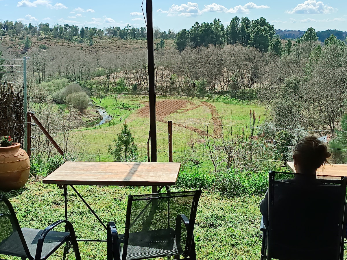 Zrelaksuj się, odkrywaj i odpocznij w tym dużym, przytulnym apartamencie na naszej ekologicznej farmie, u stóp gór Serra da Gardunha. Spędź dzień na kajakach, spacerach lub rowerach w górach, korzystając z największego spa w Portugalii (20 minut) i odkrywając zabytkowe wioski i miasta, a następnie wróć do domu, aby zrelaksować się w hamaku w sadzie, podziwiać widoki z wanny lub odpocząć przy klasycznym winylu. Mieszkamy na miejscu, ale apartament jest całkowicie prywatny, zajmuje całe górne piętro i ma własne wejście.