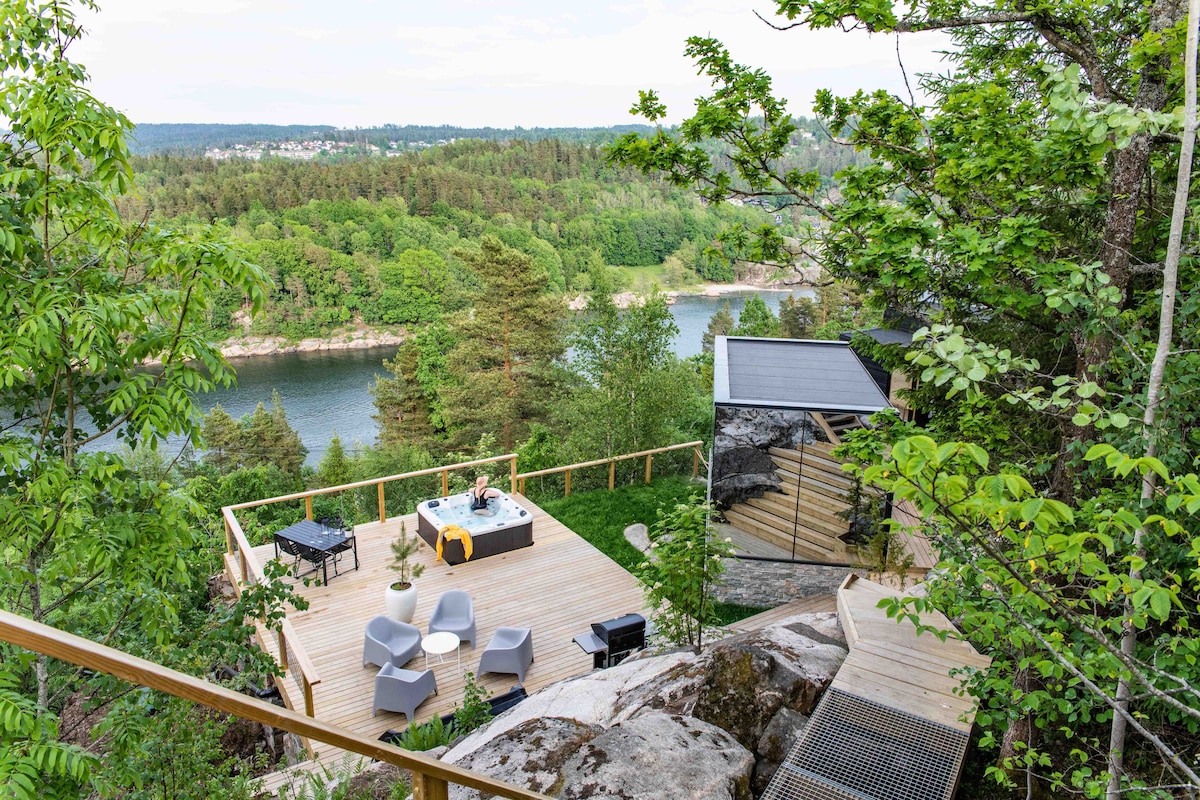 Cabin for 4 by lake near to Oslo Hot tub AC Wifi
