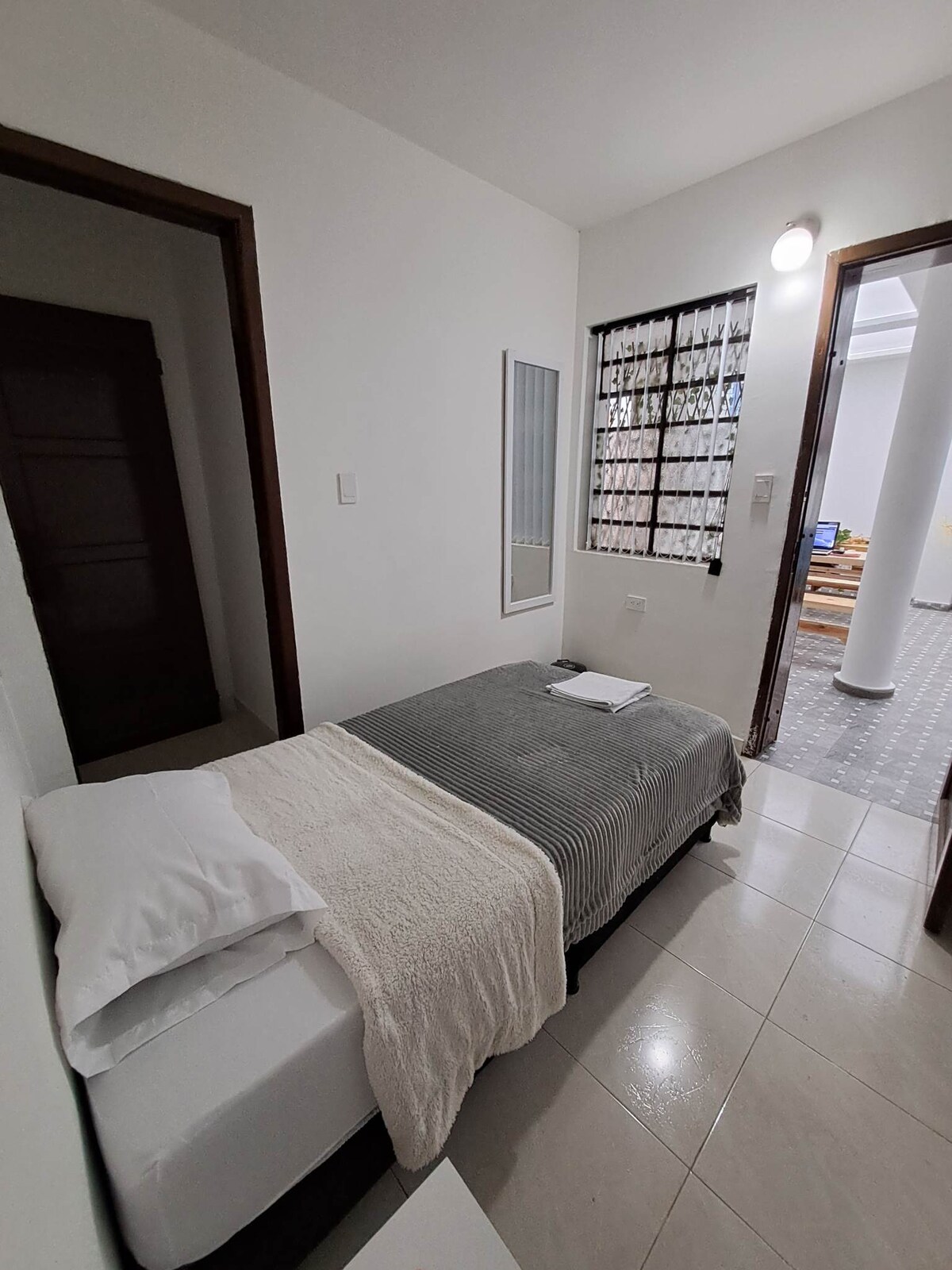 Room in a boutique hotel located in the Palermo neighborhood of Teusaquillo, in a residential area, minutes' walk from the Palermo Clinic, the city center, El Campin Stadium, the Movistar Arena, and the airport. The room features a private bathroom, desk, 32-inch smart TV, and smart locks. Night security.