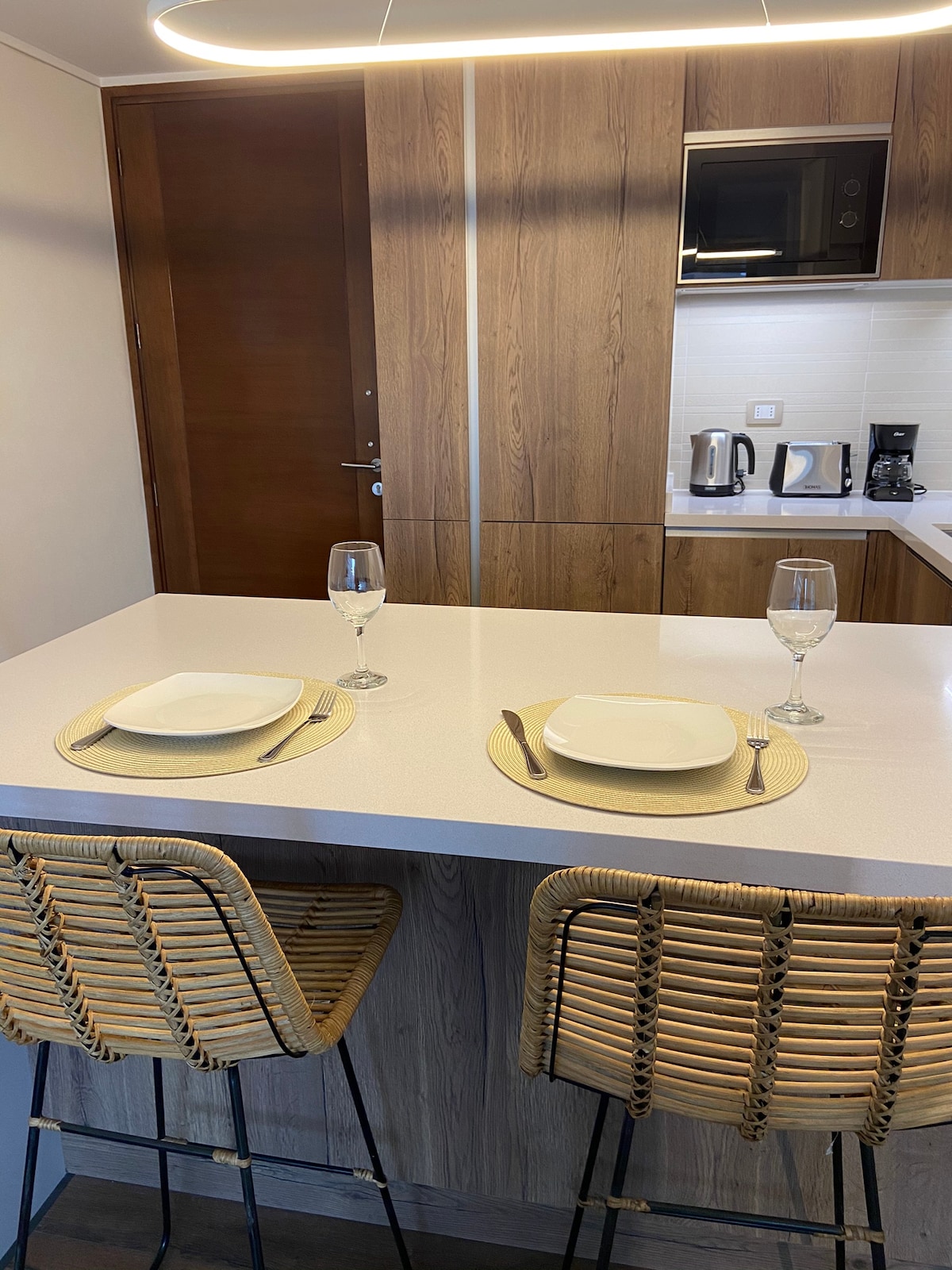 Nowe mieszkanie, położone w jednej z najbardziej ekskluzywnych dzielnic Regionu Stołecznego. W pobliżu znajduje się Parque Araucano, jeden z głównych terenów zielonych Las Condes, sektor finansowy Nueva Las Condes, a także centrum handlowe Parque Arauco, centrum handlowe Open Mall, banki, supermarkety, lokale gastronomiczne i Clinica Alemana. Apartament jest wyposażony we wszystko, czego potrzebujesz, aby pobyt był udany. Posiada m.in. łóżko typu king size, rozkładaną sofę, podwójne zasłony, telewizor 55”, ekspres do kawy Nespresso, zmywarkę.