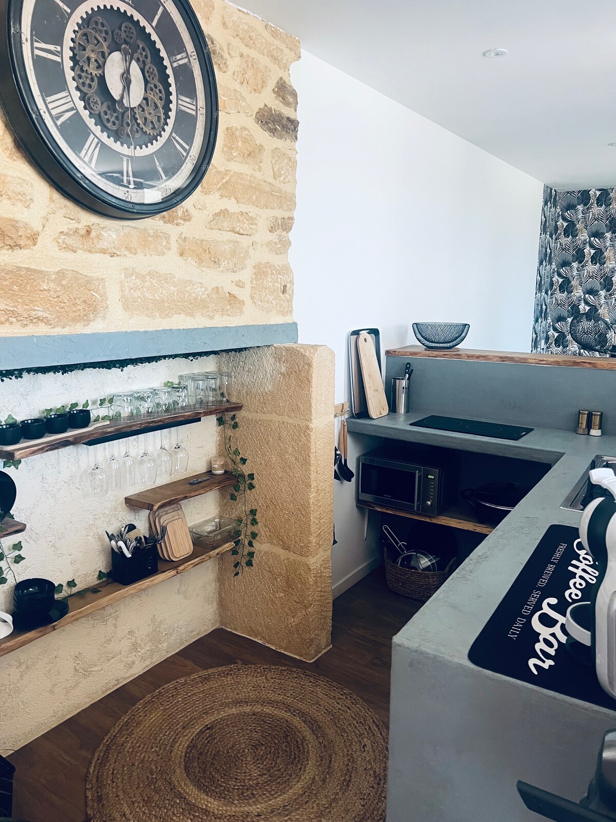 Idealnie położony na styku departamentów Lot, Corrèze i Dordogne, nasz apartament dwupoziomowy będzie idealnym miejscem do relaksu w ciszy, jednocześnie korzystając z kilku tematów zwiedzania: turystycznych, gastronomicznych lub sportowych, poprzez wiele niezwykłych miejsc wokół Sarlat, Rocamadour lub Saint-Cyr Lapopie... i wiele innych. Z myślą o nadaniu drugiego życia różnym meblom, apartament ten został całkowicie odnowiony i wyposażony tak, aby zapewnić Ci „kokonowanie”.