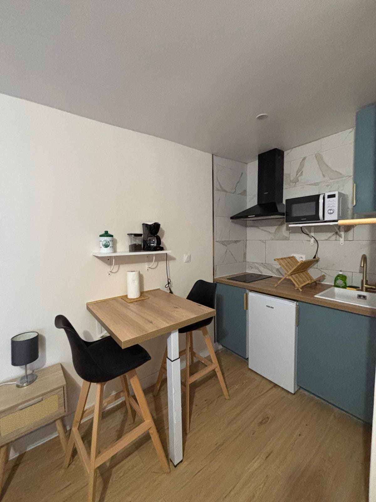 🏡 Maisonnette individuelle située dans un ilot de verdure en plein centre ville. Vous disposerez d'un studio chaleureux entièrement rénové avec vue sur le jardin. Un petit coin terrasse, vous permettra également de vous détendre au calme. 📍 Situé dans le quartier de la Mairie, à 3 min des bords de Seine et à 8 min à pied de la gare RER de Maisons-Alfort-Alforville qui vous permettra de rejoindre Paris Centre en moins de 10min.