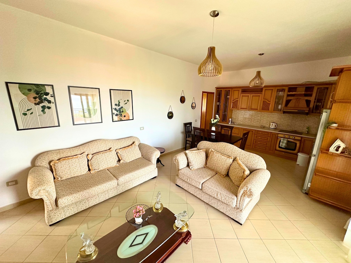 Luksusowy apartament przy plaży położony w samym sercu Sarandy w Albanii. Dzięki centralnej lokalizacji będziesz mieć łatwy dostęp do wszystkich udogodnień potrzebnych do niezapomnianych wakacji, w tym restauracji, kawiarni i sklepów. Apartament jest pięknie zaprojektowany i w pełni wyposażony we wszystko, czego potrzebujesz, by poczuć się jak w domu. Znajdziesz tu komfortowy salon, w pełni wyposażoną kuchnię, relaksującą łazienkę i przestronny balkon, z którego można podziwiać wspaniałe widoki na morze i miasto.