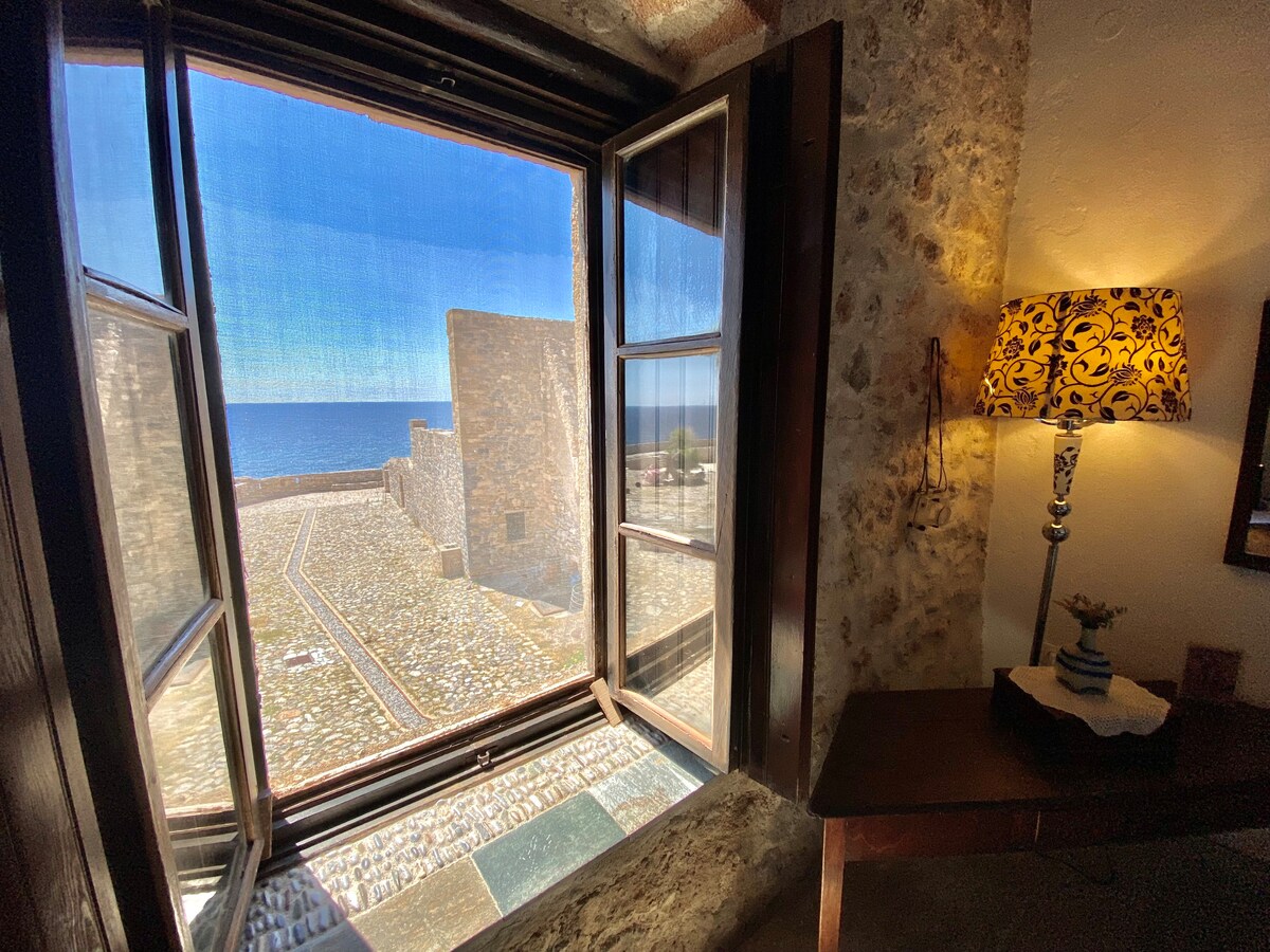 Podróż przez historię w potężnej średniowiecznej twierdzy Monemvasia. Ta 44-metrowa maisonette, która jest częścią mojego XIX-wiecznego domu rodzinnego, ma łazienkę, kuchnię i duży -panoramiczny taras z oszałamiającym widokiem na Myrtoon Pelagos i samo miasto.