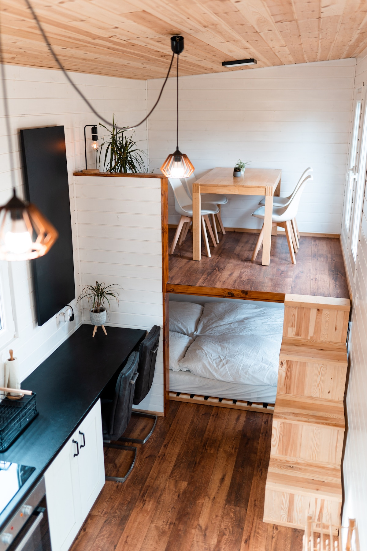Przytulny, mały, rustykalny apartament na poddaszu w starym domu z 3 piętrami, spokojna lokalizacja z ogrodem, niedaleko jeziora i miasta, bardzo ładne widoki na góry. Przystanek autobusowy do miasta, do jeziora lub dworca kolejowego na 50m,dobry rzeźnik,warzywa i piekarz w odległości 200m. W razie potrzeby można wypożyczyć rower lub kajak. Parking bezpośrednio przed domem.