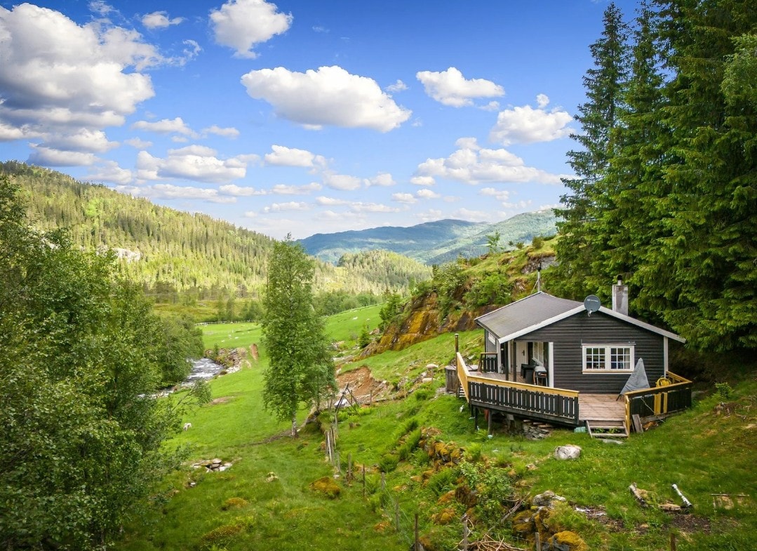 Ideally situated on the outskirts of Voss, this cosy little cabin is a short 10-minute bike ride from the city centre and offers a wide range of adventure opportunities. We have e-bikes, SUP, boat, and garden games available to rent. The guest cabin is simple yet beautiful, with what you need for a classic Scandinavian outdoor lifestyle. It is equipped with some simple kitchen utensils, a BBQ, a clecena C1 toilet, an outdoor shower, two single beds (extra bed available) . Free parking