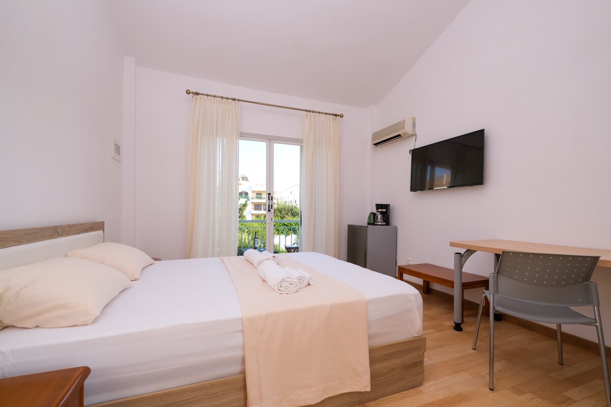 Ten stylowy apartament z jedną sypialnią ma niezależne wejście z boku budynku. Posiada otwartą część dzienno-jadalną oraz w pełni wyposażoną kuchnię. Posiada wygodną sypialnię z łóżkiem typu queen size i dużą szafą. Z salonu można również wyjść na duży taras z leżakami. Ten przytulny apartament posiada również nowoczesną łazienkę z kabiną prysznicową. Jego położenie jest w samym centrum Voula 3 minuty spacerem od sklepów, plaża jest 400 metrów. W pobliżu przystanek autobusowych, postojów taksówek i tramwajów.