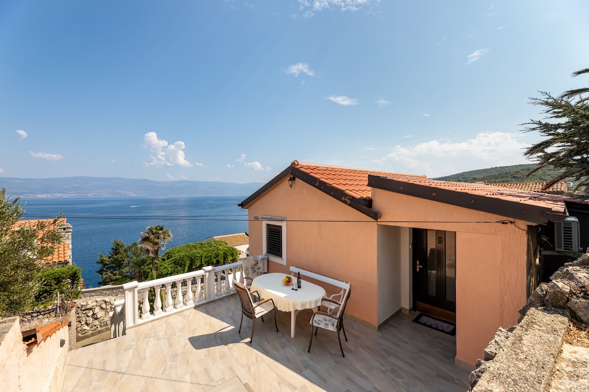 Apartament znajduje się w pobliżu centrum Opatija, zaledwie kilka minut jazdy samochodem lub osiem minut spacerem. Składa się z salonu, sypialni, jadalni, dwóch łazienek, kuchni, sauny, salonu na otwartej przestrzeni, tarasu, otaczającego ogrodu i parkingu. Dzięki temu, że jesteś na parterze z otaczającym ogrodem, masz wrażenie, że wynajmujesz dom, a nie mieszkanie.