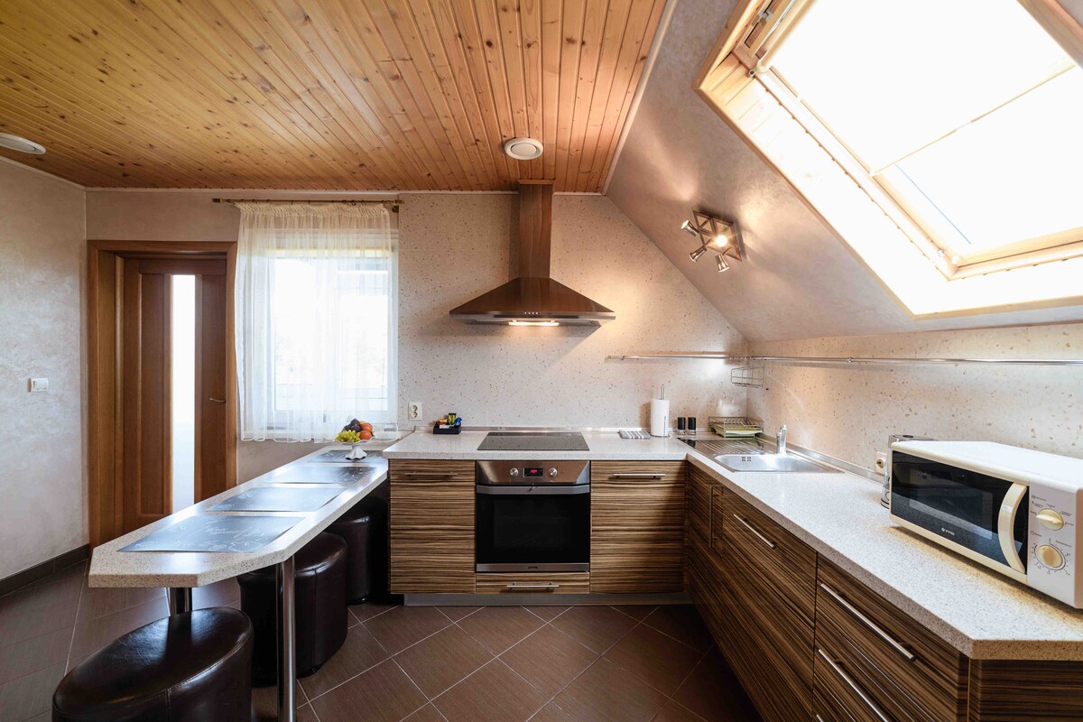 Wspaniały przestronny, lekki apartament na wygodne wakacje. Znajduje się w samym centrum miasta, w historycznej części. Wszystkie historyczne zabytki znajdują się w odległości spaceru, rzeka z pięknymi nasypami, piękne ulice do spacerów. Dwie minuty drogi od domu znajdują się przystanki autobusowe, z których można łatwo i szybko dojechać do dowolnej części miasta. W pobliżu jest wiele kawiarni, sklepów, targowisk itp. Sam apartament znajduje się w zabytkowym domu.