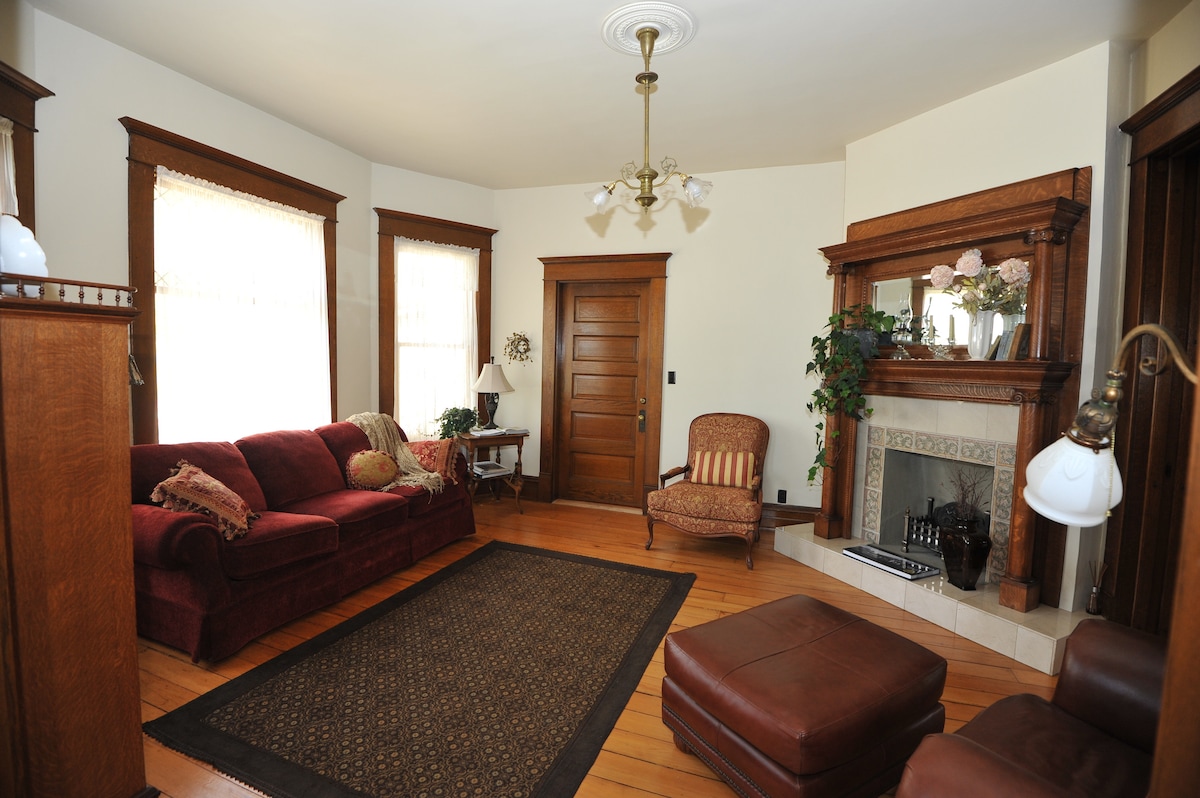 Ciesz się prywatnym pokojem w tym w pełniem odnowionym domu z 1902 roku w stylu Queen Anne. Pokój Walser posiada prywatną łazienkę z prysznicem, a także wannę z jacuzzi. Goście mają dostęp do wszystkich głównych części wspólnych, w tym salonu, salonu i jadalni i jednego z trzech ganków. Dwa z tych ganków mają widok na rzekę Missisipi. Goście uwielbiają również spędzać czas w nowo wyremontowanej kuchni. Przepraszamy, ale gotowanie tylko w kuchence mikrofalowej. To nie jest pensjonat ze śniadaniem, a śniadanie nie jest zapewnione.