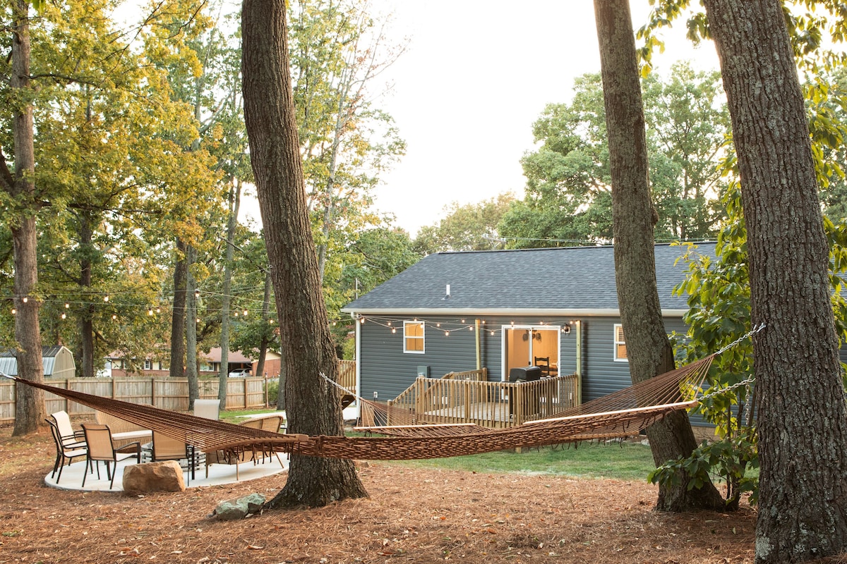 Przyjedź i ciesz się pobytem w całkowicie odnowionym, nowoczesnym domu w stylu wiejskiego domku z w pełni wyposażoną oazą na podwórku. Nie pominięto żadnego szczegółu. W zestawie: nowa wanna z hydromasażem, nowoczesny pawilon na świeżym powietrzu na spotkania rodzinne, nowoczesne huśtawki i wiele więcej! <3 min jazdy (<1,0 mil) do sklepów spożywczych (Walmart, Lidl i Aldi) <5 minut jazdy (3,4 mili) do HWY 385/ I-85 7 minut (3,6 mili) do centrum handlowego Haywood 10 min (4,7 mili) do centrum Main St. 15-20 minut (6,8 mili) do lotniska GSP