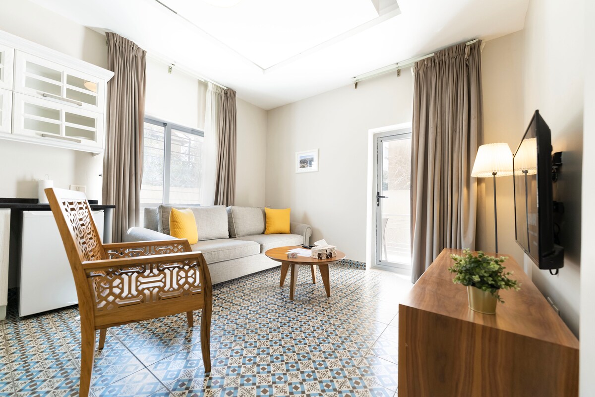 Welcome to your tranquil Superhost retreat! This unique, sun-drenched studio is a peaceful base for exploring Jordan, featuring a premium King-sized bed, a private balcony, and modern comforts like AC/Heating and a Smart LED TV . We're a short 15-minute walk to Madaba's City Center and only 20 minutes from Queen Alia Airport (AMM). Perfect for couples, solo adventurers, or remote workers seeking comfort, quiet, and convenience.