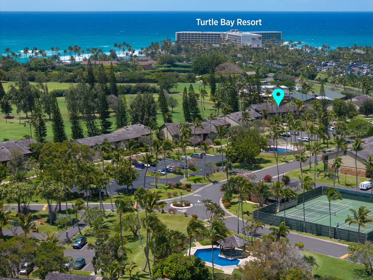 Ciesz się niesamowitym doświadczeniem pobytu w Turtle Bay bez cen kurortów! Nasze mieszkanie ma wszystkie udogodnienia, których potrzebujesz (w pełni wyposażona kuchnia, wygodne łóżko typu king-size z klimatyzacją, pralką i suszarką). Ciesz się naszymi dwoma podgrzewanymi basenami, kortami tenisowymi, kortami do gry w ogórki i grillem na węgiel drzewny. Jesteśmy zaledwie 5 minut spacerem od plaży. Znajdujemy się na parterze z pięknym lanai, aby wypić filiżankę relaksującej kawy, podczas gdy dzieci mogą biegać!
