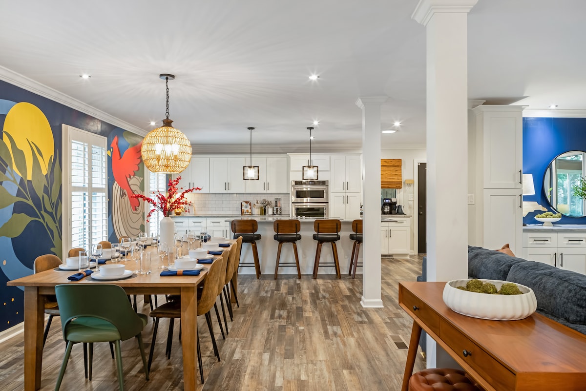 Witamy w naszym wykwintnym wiktoriańskim domu z 1897 roku w Durham, gdzie historia spotyka się z nowoczesnym luksusem. Wybierz się na spacer po okolicy, aby napić się porannej kawy, a o zachodzie słońca usiądź na bujaku na werandzie z koktajlem w dłoni. Dom oferuje prawdziwą kuchnię szefa kuchni, przestronne przestrzenie do spotkań i łazienki przypominające spa, a także relaksujące jacuzzi. Nasz dom jest idealny na wyjazdy z przyjaciółmi i rodziną, wyjazdy służbowe lub podróże weselne. Bezpłatny parking i łatwy dostęp do kampusu Duke, obiektów weselnych, Durham Bulls Stadium i DPAC