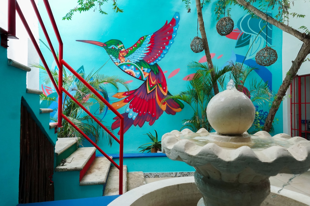 To małe studio znajduje się w samym sercu Playa del Carmen Downtown, zaledwie kilka kroków od atrakcji. Miejsce znajduje się w bezpiecznej okolicy, w pobliżu supermarketów, kawiarni, restauracji i innych miejsc. Wewnątrz znajdziesz szybkie Wi-Fi, duże łóżko, biurko do pracy, miejsce na ubrania i podstawową prywatną kuchnię z prywatną łazienką. Ten uroczy apartament jest idealną bazą wypadową do odkrywania wszystkiego, co Playa del Carmen ma do zaoferowania, No agua caliente