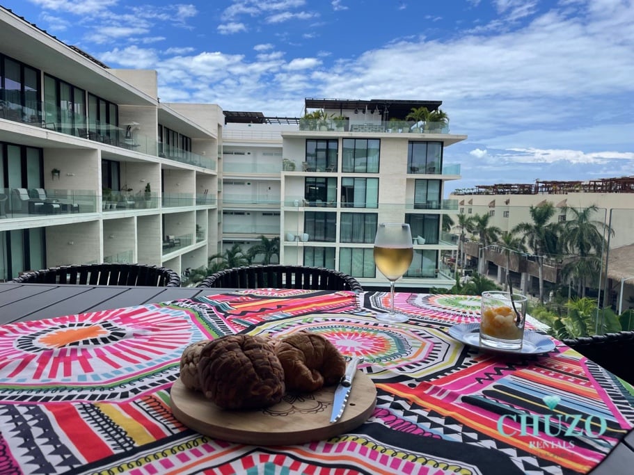 Ten przestronny i nowoczesny apartament o powierzchni 881 stóp kwadratowych oferuje pobyt. Znajduje się na nim obszerny dach z pięknym widokiem na miasto i morze, duże łóżko, duża łazienka, w pełni wyposażona kuchnia oraz pralka i suszarka. Podczas wakacji możesz popływać w krystalicznie czystej wodzie Playa Mamitas, oddalonej o zaledwie 7 minut spacerem. Ponadto na słynnej 5 Alei, położonej zaledwie przecznicę dalej, znajdziesz wiele różnych restauracji, barów, sklepów i innych.