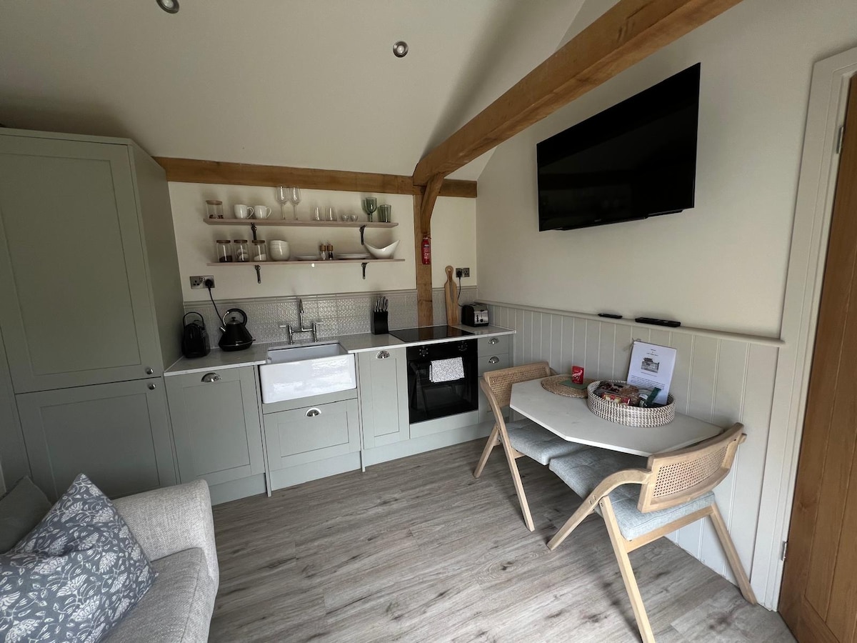 Escape to our charming retreat on a tranquil private road. Perfect for couples or solo travellers, this stylish space features an open-plan living area with a comfy sofa and a fully equipped mini-kitchen. The serene bedroom offers a plush kingsize bed for a restful night’s sleep, and the bathroom boasts a spacious shower. Enjoy al fresco dining in your private gated outdoor space. Pet-friendly for one SMALL dog . Explore nearby beaches, walking trails, and local pubs all within a 5 min walk.