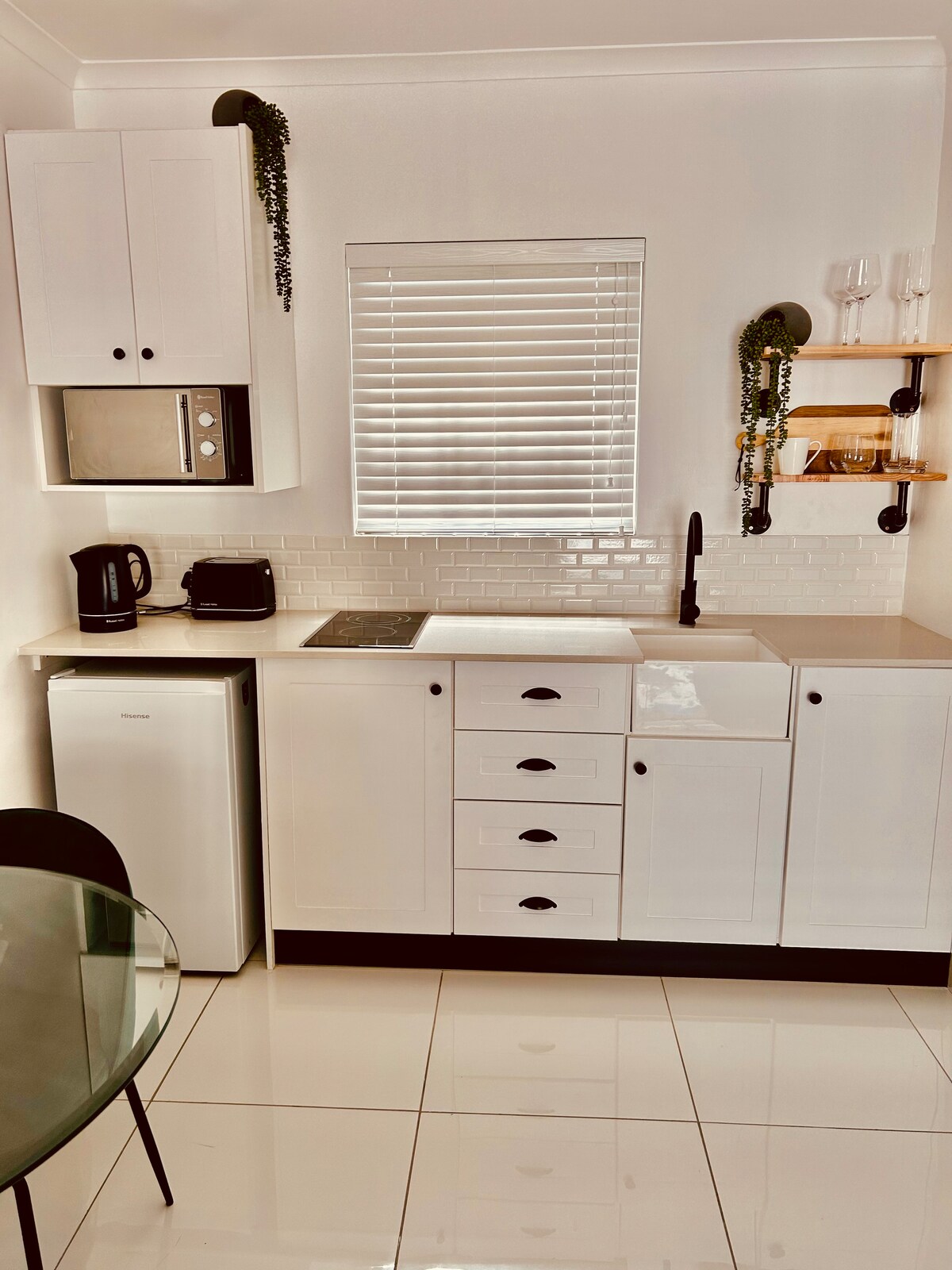 Odpręż się i zrelaksuj w tej spokojnej, prywatnej i stylowej przestrzeni. Unit 1 to nowo wybudowany luksusowy domek odpowiedni dla 2 osób dorosłych i 2 dzieci. Ta nowoczesna sypialnia wyposażona jest w podwójne łóżko i łazienkę z prysznicem. Jest tu w pełni wyposażona kuchnia i salon z rozkładaną sofą. Centralnie położony w pobliżu wszystkich centrów handlowych i autostrady z łatwym dostępem do wszystkich interesujących miejsc w Port Elizabeth. Rodziny, pokolenie Z, biznes wszyscy mile widziani.