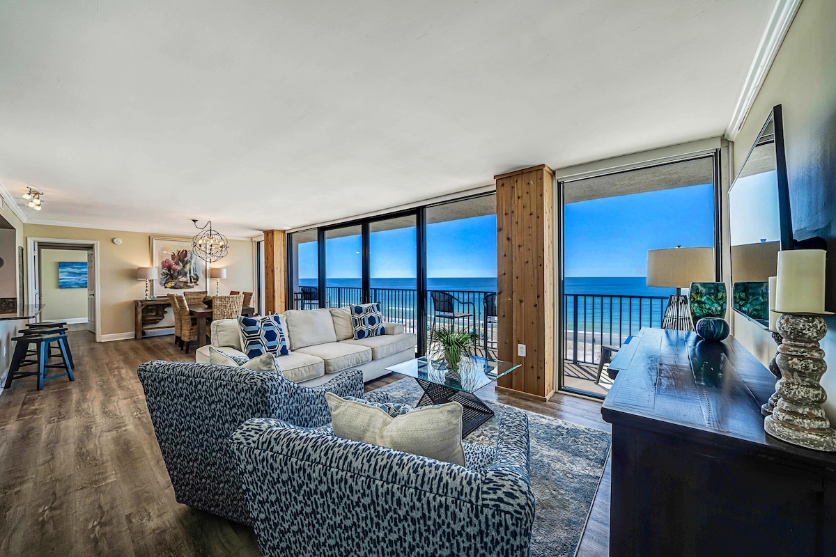 Come to our 8th floor, beach view paradise! 2023 updates! Gulf-view pool, indoor pool, hot tub, tiki bar, fitness center... All just steps away. Inside our one bedroom unit you can enjoy a King bed, two built-in bunk beds, and a Queen pullout sofa (sleeping 6 total). Granite countertops, breakfast bar with stools, pots, pans and dishes, beautiful balcony furniture, SMART UHD TV in the living room, and much more. Minutes away from world-class shopping and dining. Must be 25 or older to book.