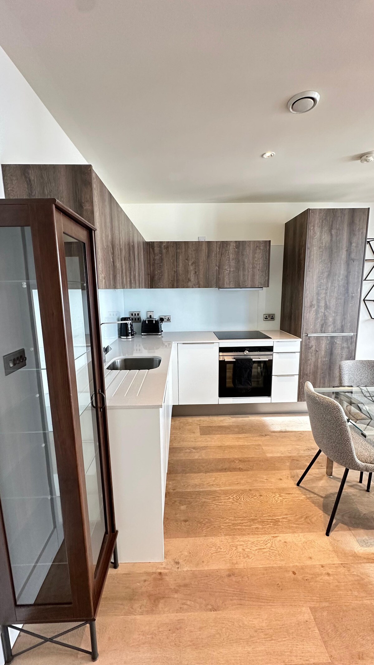 Otrzymujesz całe mieszkanie z 1 sypialnią. Prywatne bez przestrzeni wspólnych. Wypełnione naturalnym światłem i wyposażone w wygodny prywatny salon, spokojną sypialnię z podwójnym łóżkiem, łazienkę z prysznicem i dobrze wyposażoną kuchnię. Przestrzeń została zaprojektowana z myślą o relaksie i oferuje odpoczynek od zgiełku miasta. Możesz łatwo odkrywać pobliskie atrakcje dzięki doskonałym połączeniom komunikacyjnym. To mieszkanie jest idealnym połączeniem komfortu i wygody podczas pobytu w Londynie