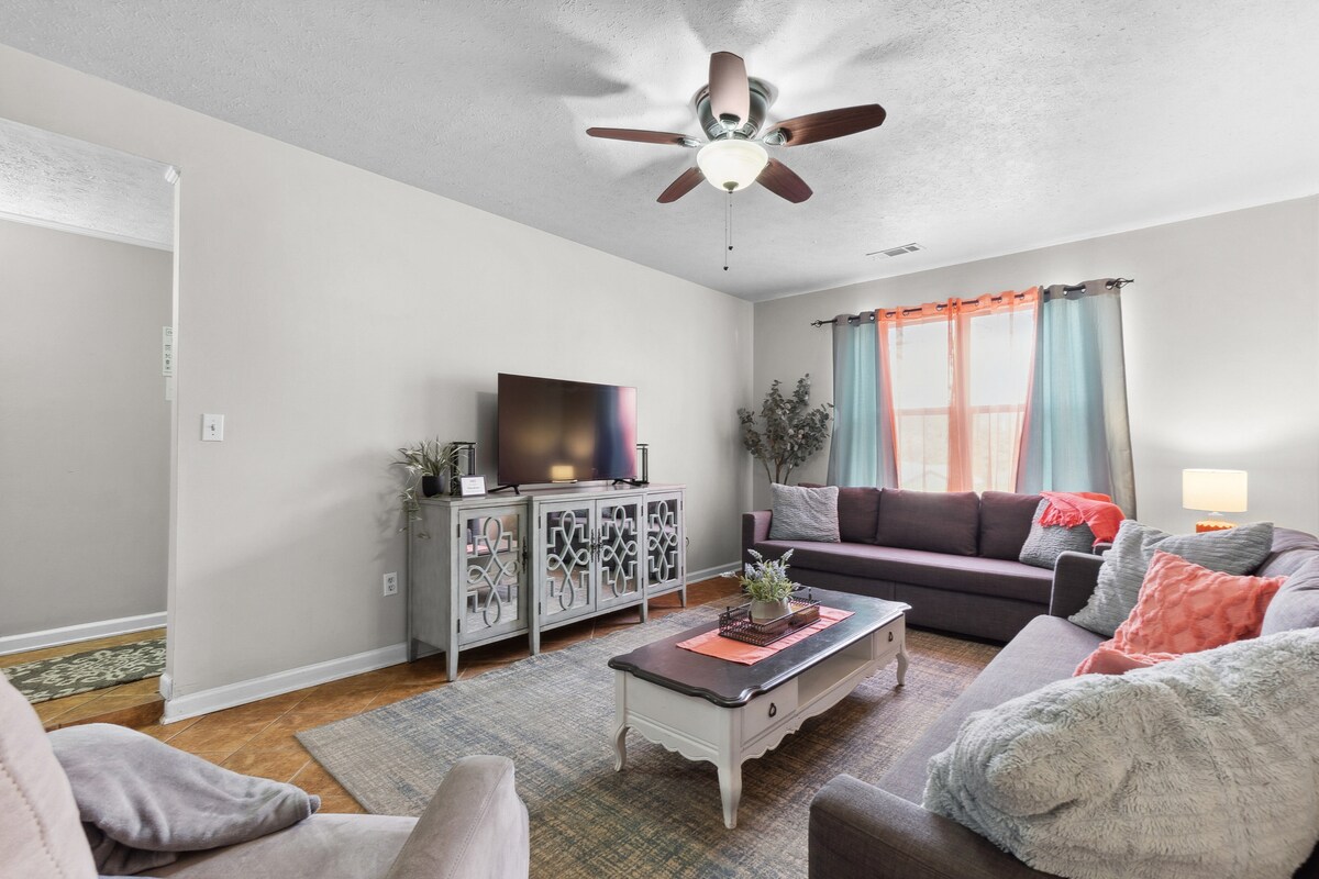 Ten dom jest idealny dla podróżnych ze zwierzętami lub dziećmi. Dzięki trzem przestronnym sypialniom, w których znajdują się dwa duże łóżka typu king i jedno łóżko typu queen, będziesz mieć mnóstwo miejsca na relaks. Duży salon ze stołem do piłkarzyków dodaje zabawy, idealny wypoczynek dla rodzin lub grup. Dogodna lokalizacja w uroczej okolicy tuż przy autostradzie 96 sprawi, że będziesz mieć blisko do sklepów, restauracji, Houston Medical Center i Robins Air Force Base. Korzystaj z szybkiego Wi-Fi, telewizorów Smart TV i w pełni wyposażonej kuchni.