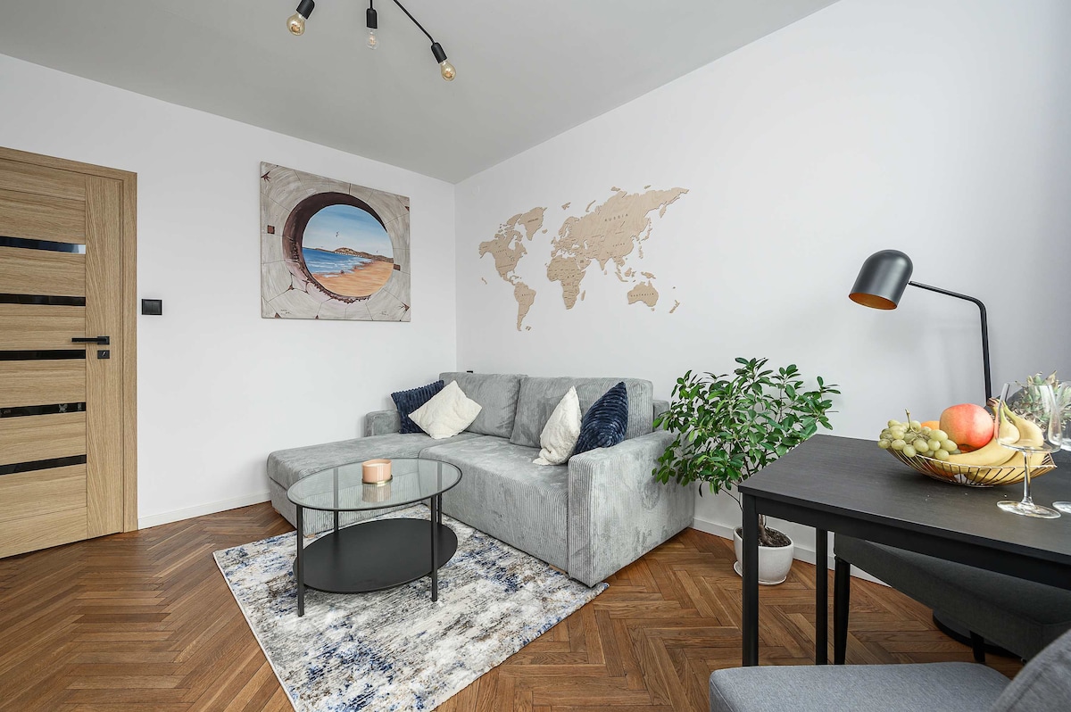 Modern and cozy, comfortable and equipped apartment in the city center with very convenient infrastructure. Ideal for business people, couples, families and travelers. Close to numerous coffe shops, bakeries, bars and restaurants, including vegan, grocery, seasonal fruit and vegetable stalls, a green park with playgrounds. Close to city bike stations, metro Politechnika station, tram network, and not far from central railway and bus station, shoping malls Zlote Tarasy, Wars Sawa.