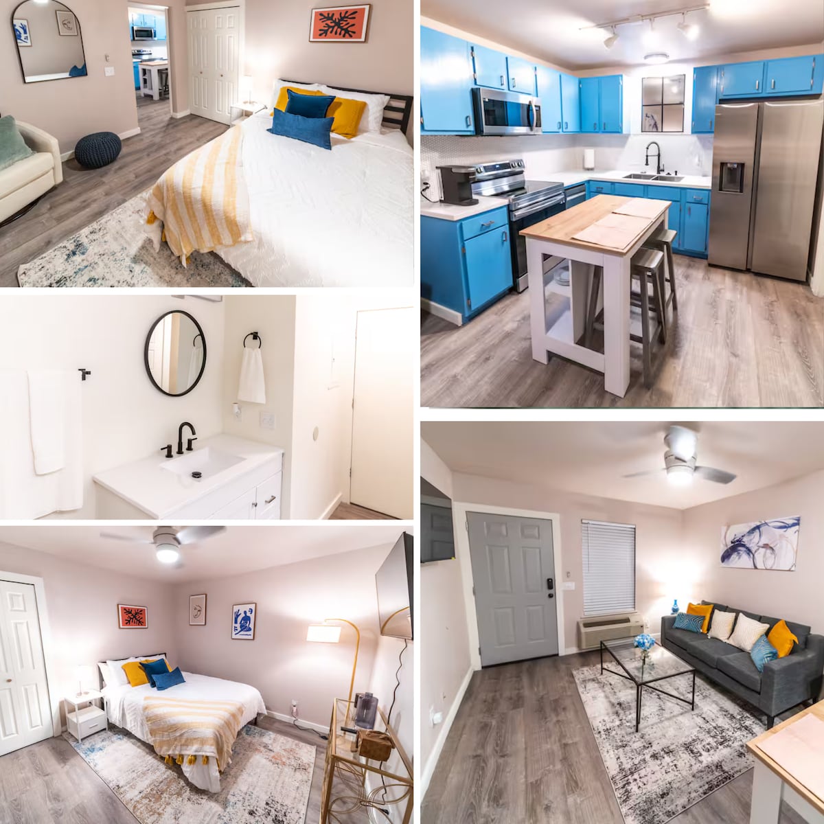 Tucked into the heart of historic downtown Springdale, this modern one-bedroom apartment sleeps 3, with 2 guests on the bed and 1 on the couch, putting everything within easy reach. Cook real meals in a fully stocked kitchen, unwind with the smart TV, and sleep soundly in fresh linens after a day exploring Ozarks parks, local museums, and some of the best casual dining in Northwest Arkansas. Free parking, self check-in, and grocery stores two minutes away make every stay effortlesly comfortable.