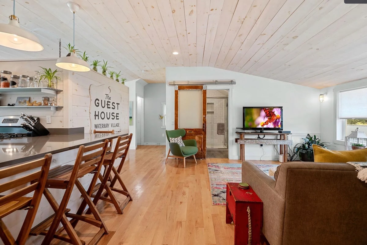 Przytulny domek gościnny w Vermont • Centrum miasta z widokiem na rzekę