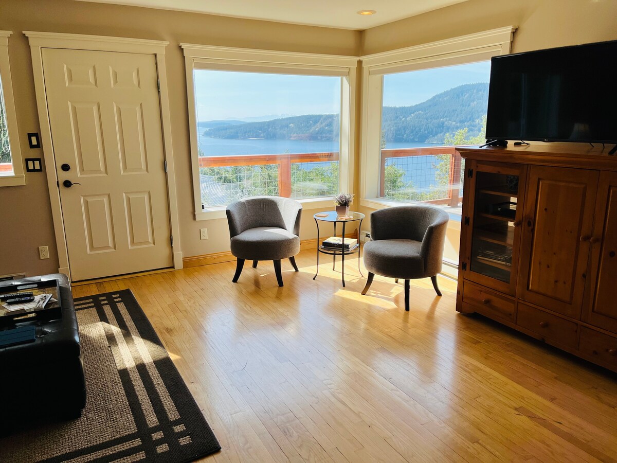 Wyspa Vashon to piękne, czarujące miejsce, a nasz domek gościnny znajduje się w wyjątkowo pięknym miejscu. Położony nad wodą na wysokim urwisku, widok dosłownie zapiera dech w piersiach; Puget Sound, Cascade Mountains i wschody słońca, które zadziwiają. Może być trudno uwierzyć, że raj na wyspie jest tak blisko dwóch dużych miast, ale czas wydaje się zatrzymać na Vashon. To magiczne miejsce; przyjdź i pozwól, aby zaklęcie zadziałało na Ciebie!