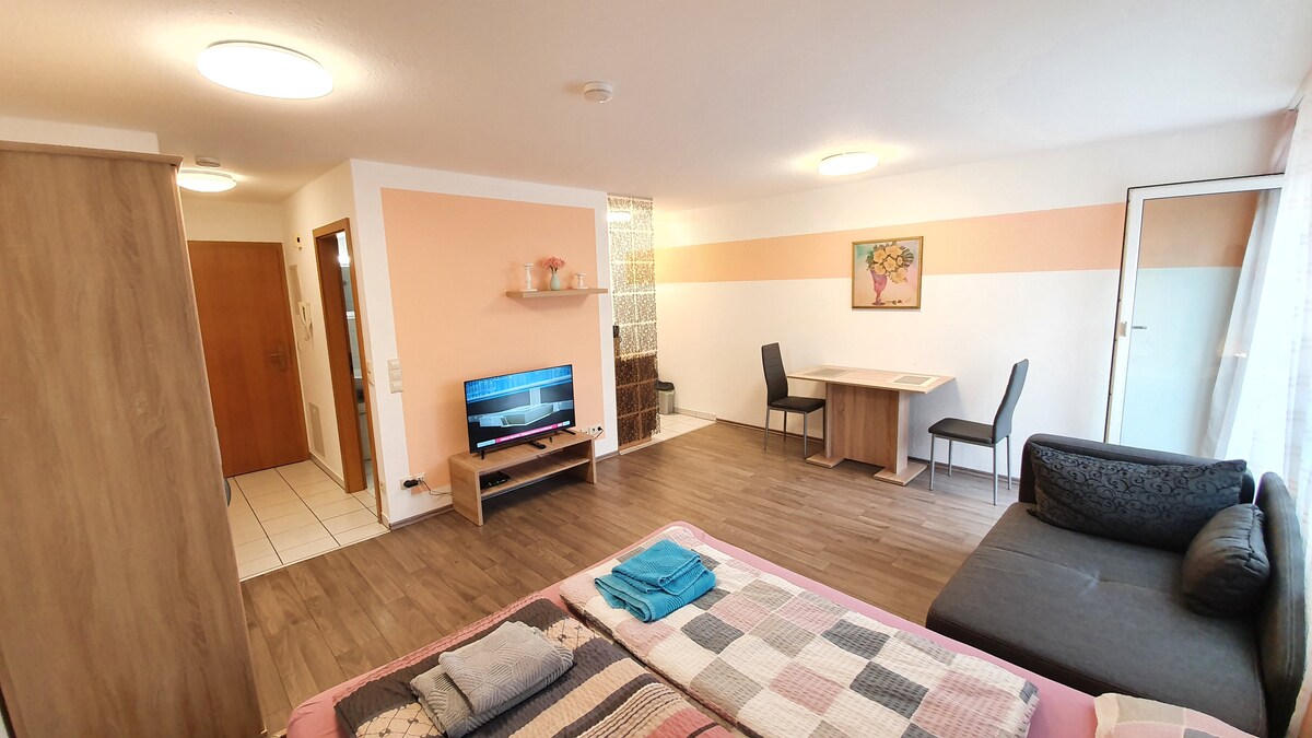 Nowoczesny, mały apartament z 1 pokojem o powierzchni ok. 27 m², z łazienką i tarasem, zapewniający dobre samopoczucie. Apartament znajduje się na parterze, w sąsiedztwie naszego domu. Jezioro Bodeńskie jest oddalone o ok. 15 minut spacerem. Sklepy, kawiarnie i restauracje znajdują się w pobliżu. Pieszo: Przystań: 15 min Dworzec kolejowy: 8 min Piekarnia, supermarket: 5 min Naturalna plaża Malerecke, która zachęca do kąpieli: 15 min Targi/port lotniczy Friedrichshafen 10 min. jazdy samochodem Możliwość wypożyczenia rowerów na miejscu