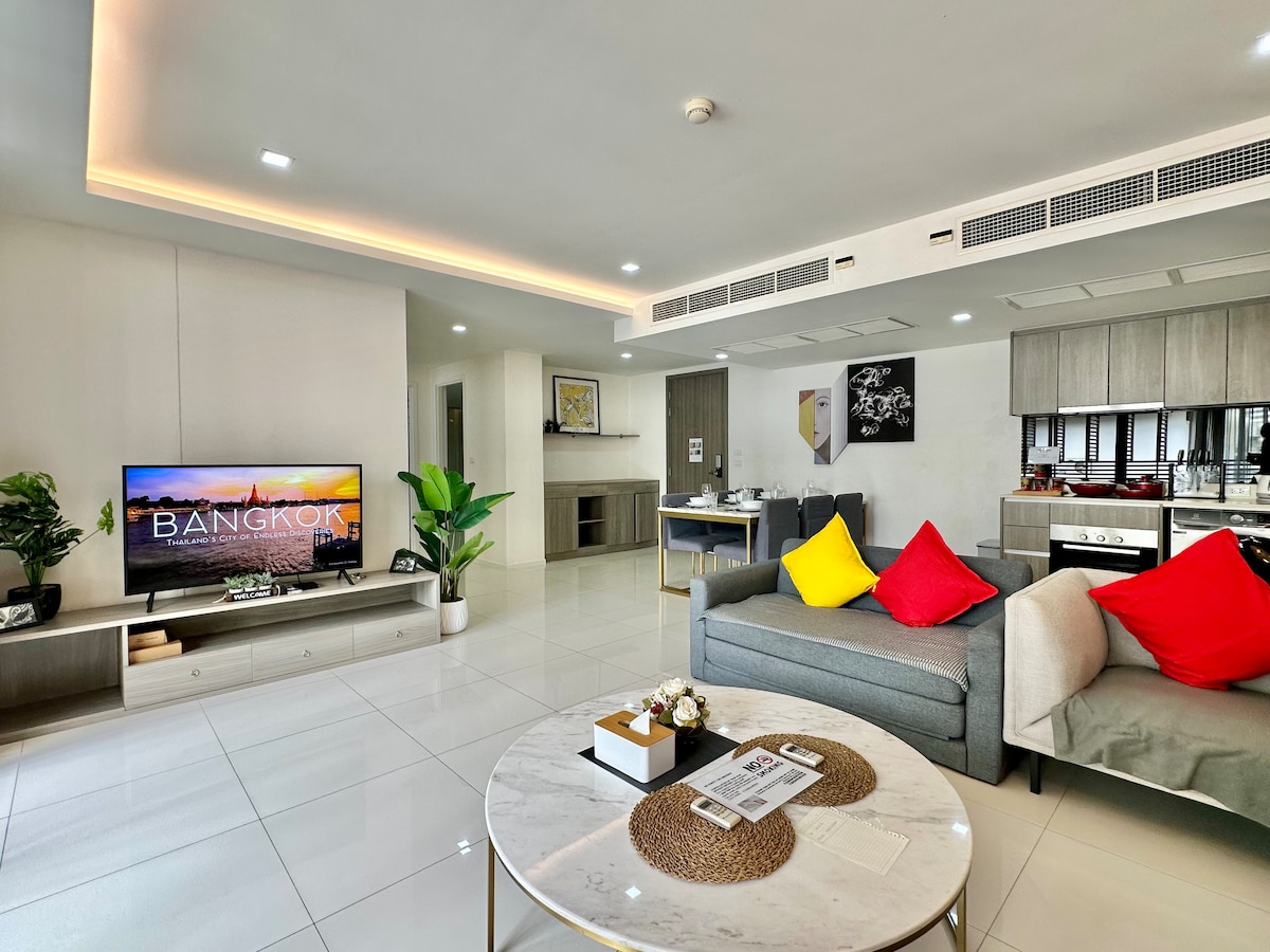 Możesz wybierać i zatrzymywać się w moim mieszkaniu i życzę udanej podróży do Tajlandii. Dom znajduje się w Rama9, apartament NA PODDASZU dostarczony w 2024 roku.Pokój ma około 70 m², w tym dwie sypialnie, salon i jadalnię, kuchnię i dwie łazienki, z łatwością pomieści 5 osób dorosłych. (!️Wskazówka: gdy liczba gości w rezerwacji wynosi 1-4 osoby, domyślnie w każdej sypialni znajduje się jedno łóżko. Jeśli chcesz dodać rozkładaną sofę w salonie, podczas rezerwacji wpisz liczbę osób jako 5 i skontaktuj się z nami po rezerwacji, aby nas o tym poinformować. Zorganizujemy personel, który przygotuje rozkładaną sofę przed Twoim pobytem!!️) Cena rezerwacji obejmuje korzystanie z całej nieruchomości, a także koszt centrum fitness, basenu i przestrzeni coworkingowej.